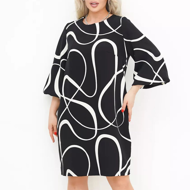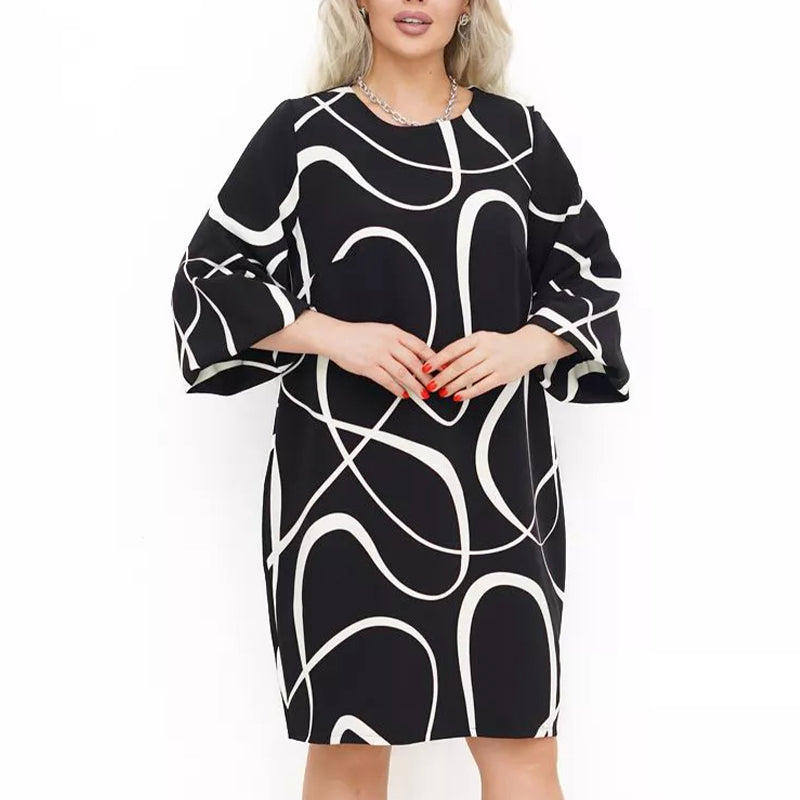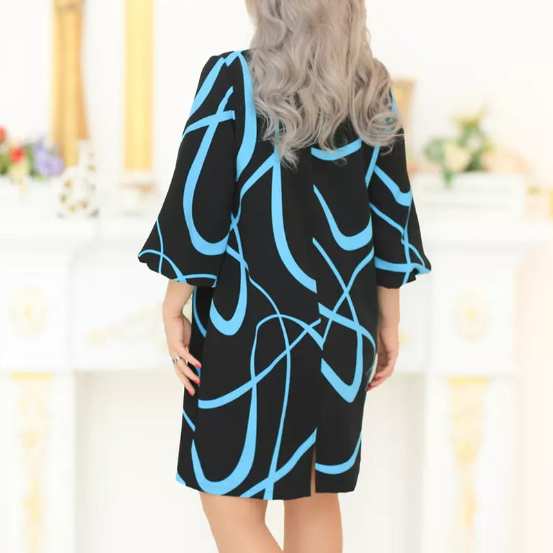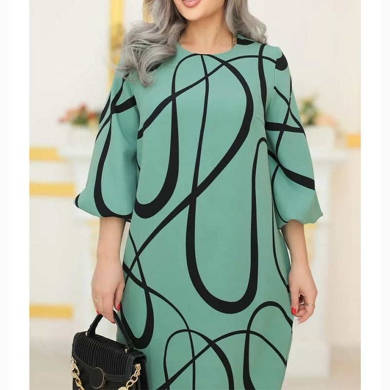 🌸 Mintás ruha kerek nyakkal és hétnegyedes ujjakkal