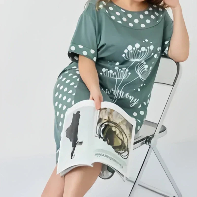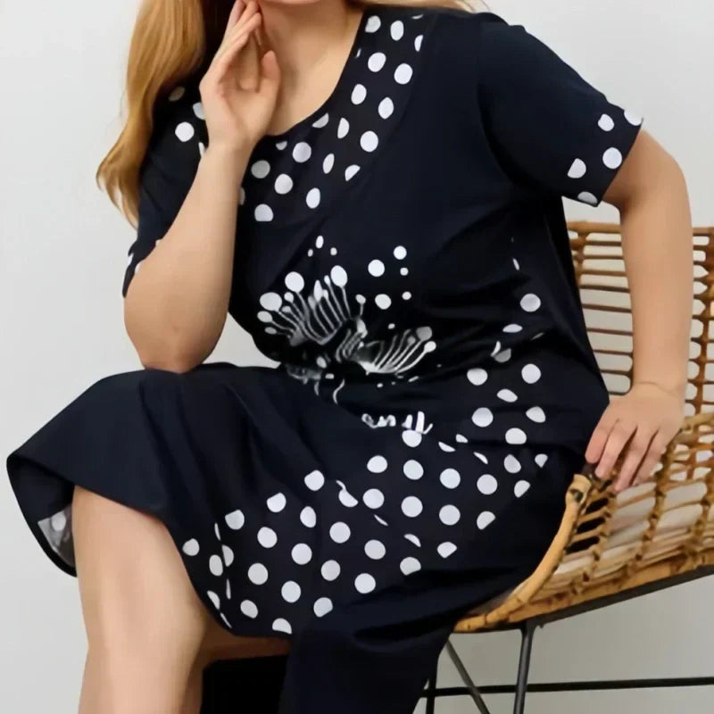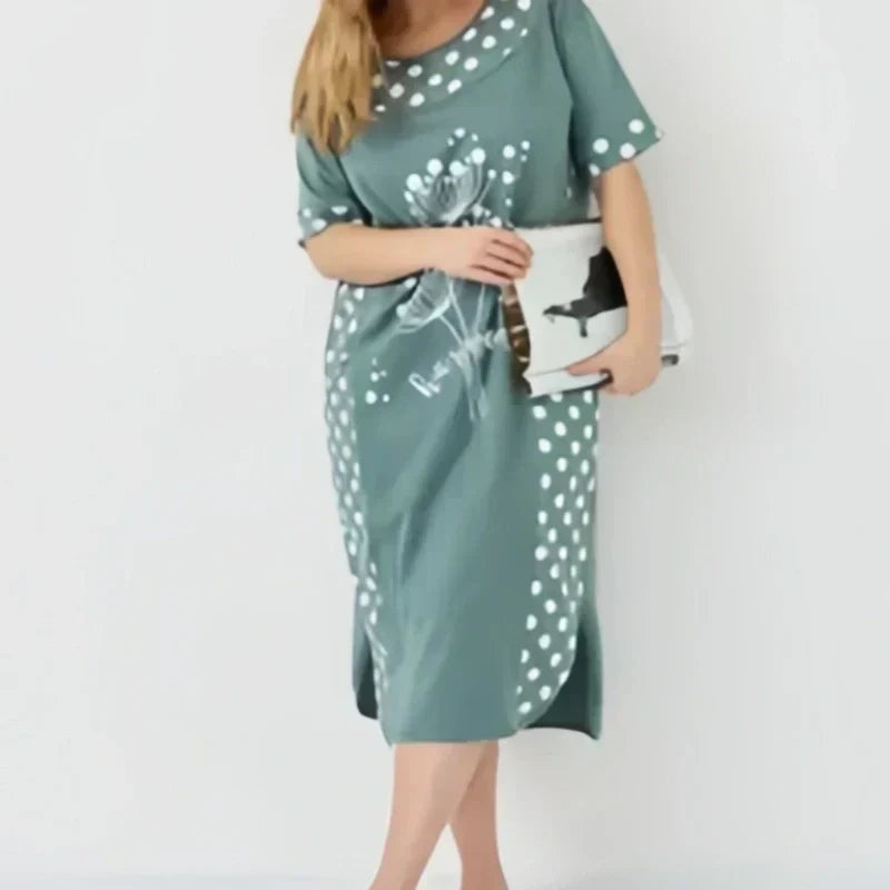 Női nyári, bő ruhák rövid ujjal és A-vonalú mintával