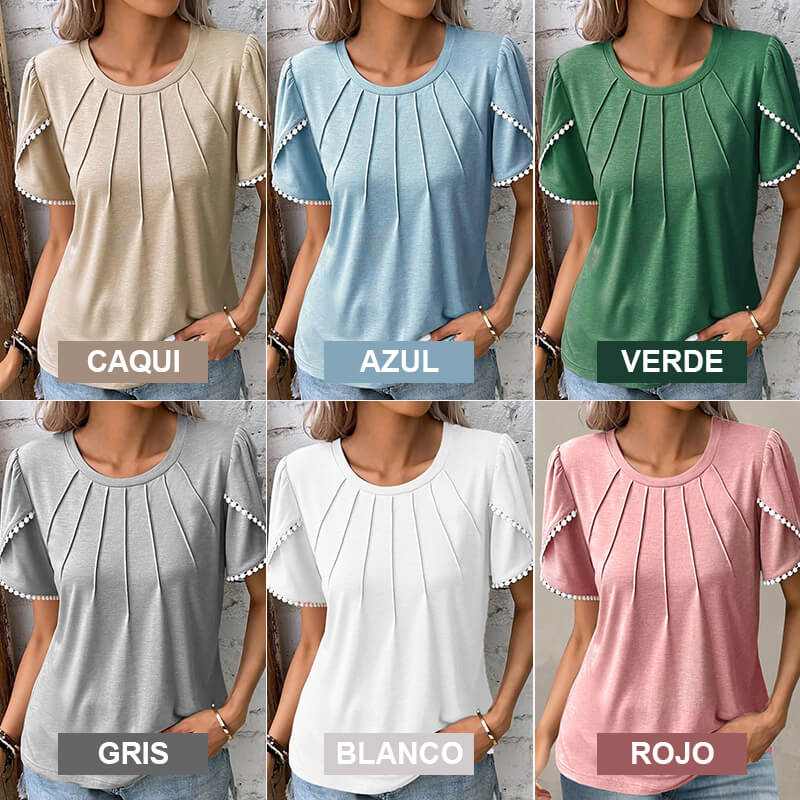 🔥Új női lezser egyszínű csipkés kerek nyakú póló