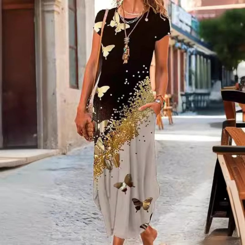 Laza és stílusos megjelenés - Ez a női ruha laza szabású póló és elegáns ruha stílusú, divatos nyomtatással díszített, ami még stílusosabbá teszi.