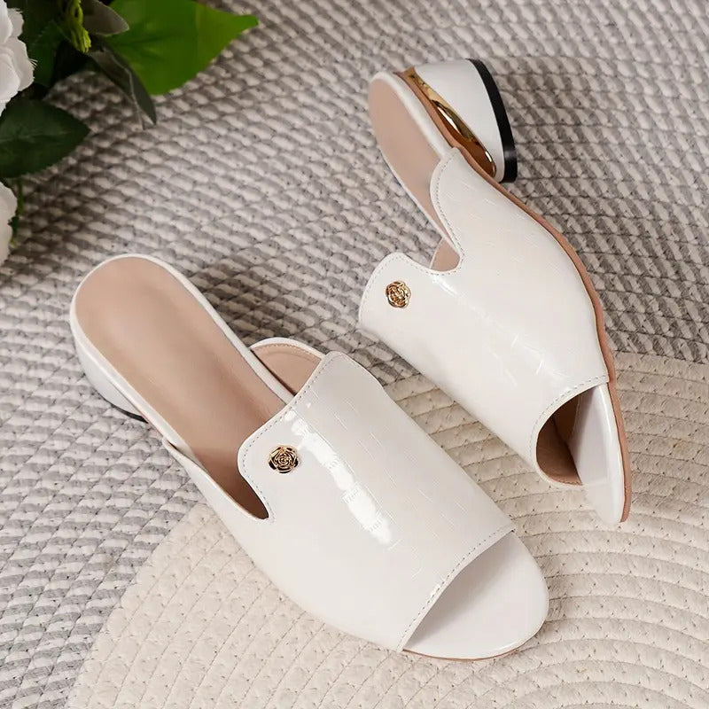 😍Utolsó nap 50% kedvezménnyel😍 - Divatos női ortopéd bőr szandál nyitott orrokkal és vastag sarokkal