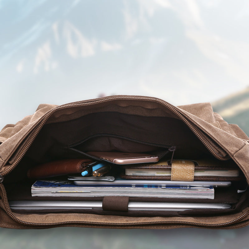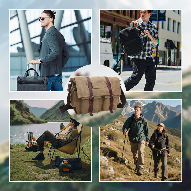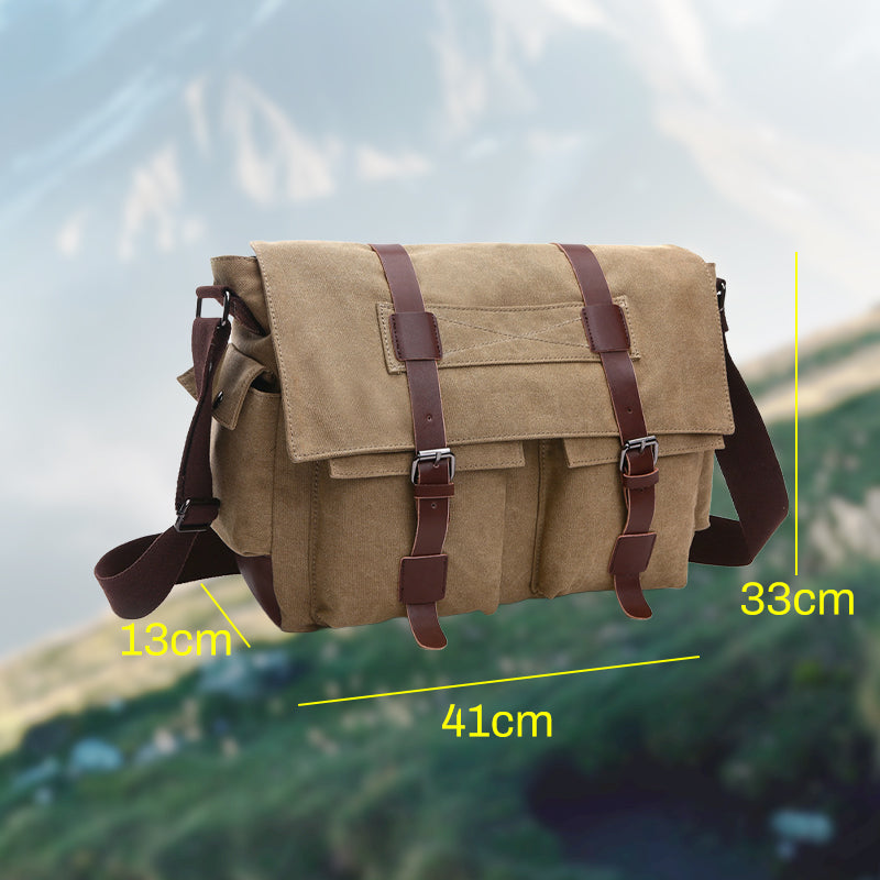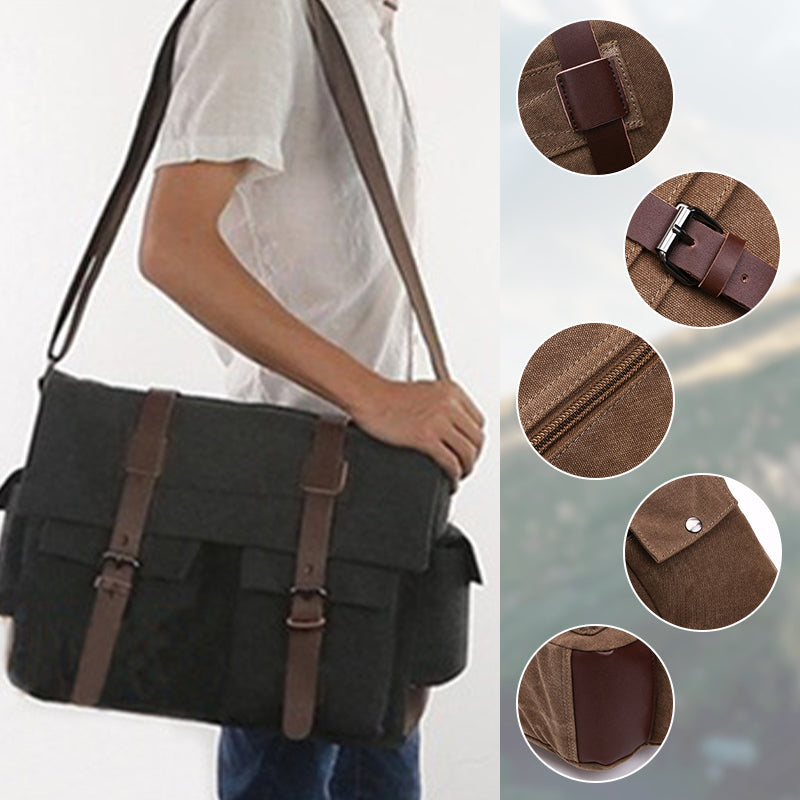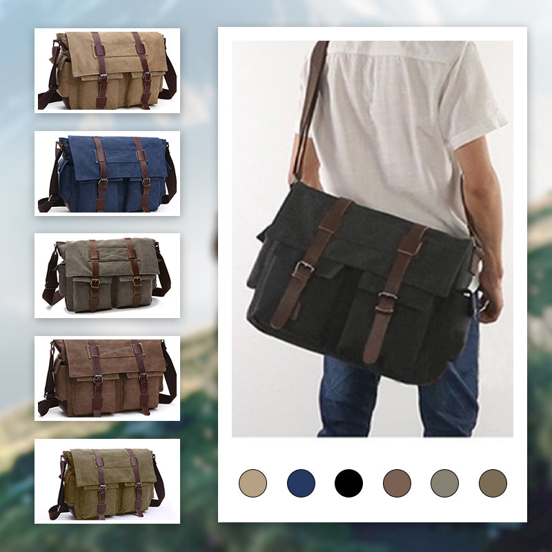 A csomag tartalma: 1 db nagy kapacitású férfi vászon válltáska