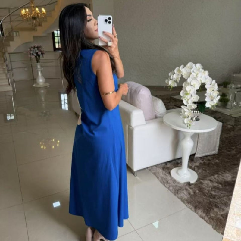 UJJATLAN KEREK GALLÉROS DIZÁJN – A klasszikus kerek nyakkivágás és az ujjatlan sziluett modern megjelenést kölcsönöz, és könnyen párosítható kiegészítőkkel, dzsekikkel vagy kardigánokkal a mindennapi sokoldalúság érdekében.