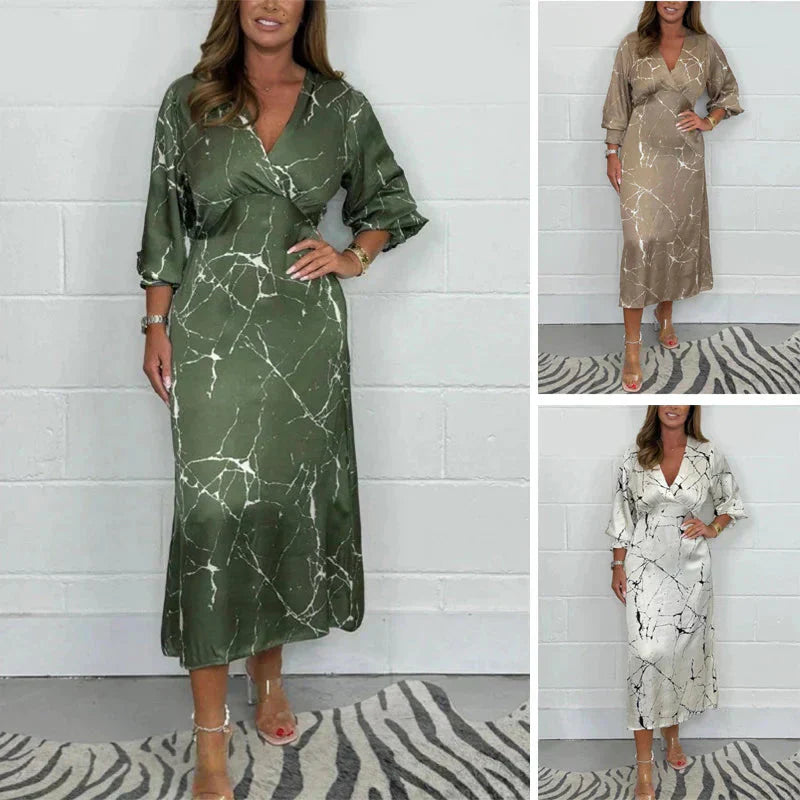 Nyomott minta: A ruha divatos mintákkal készült, amelyek vitalitást és személyiséget kölcsönöznek az összképnek, könnyen egyedi és stílusos megjelenést teremtve.
