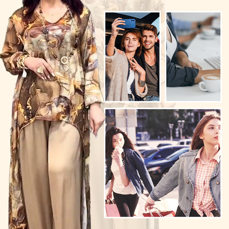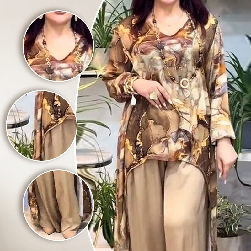 ❤️Női kétrészes szett trendi mintás felsővel és nadrággal