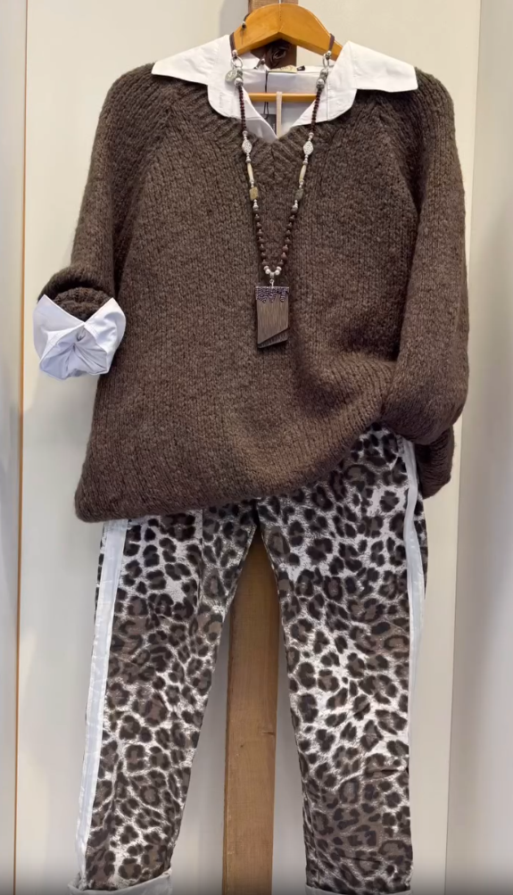 Női lezser divatos öltöny ing pulóver és nadrág