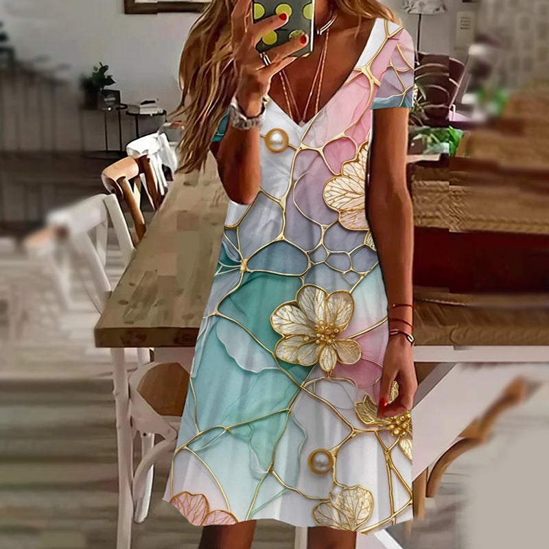 A csomag tartalma: 1 db elegáns női mintás, V-nyakú ruha