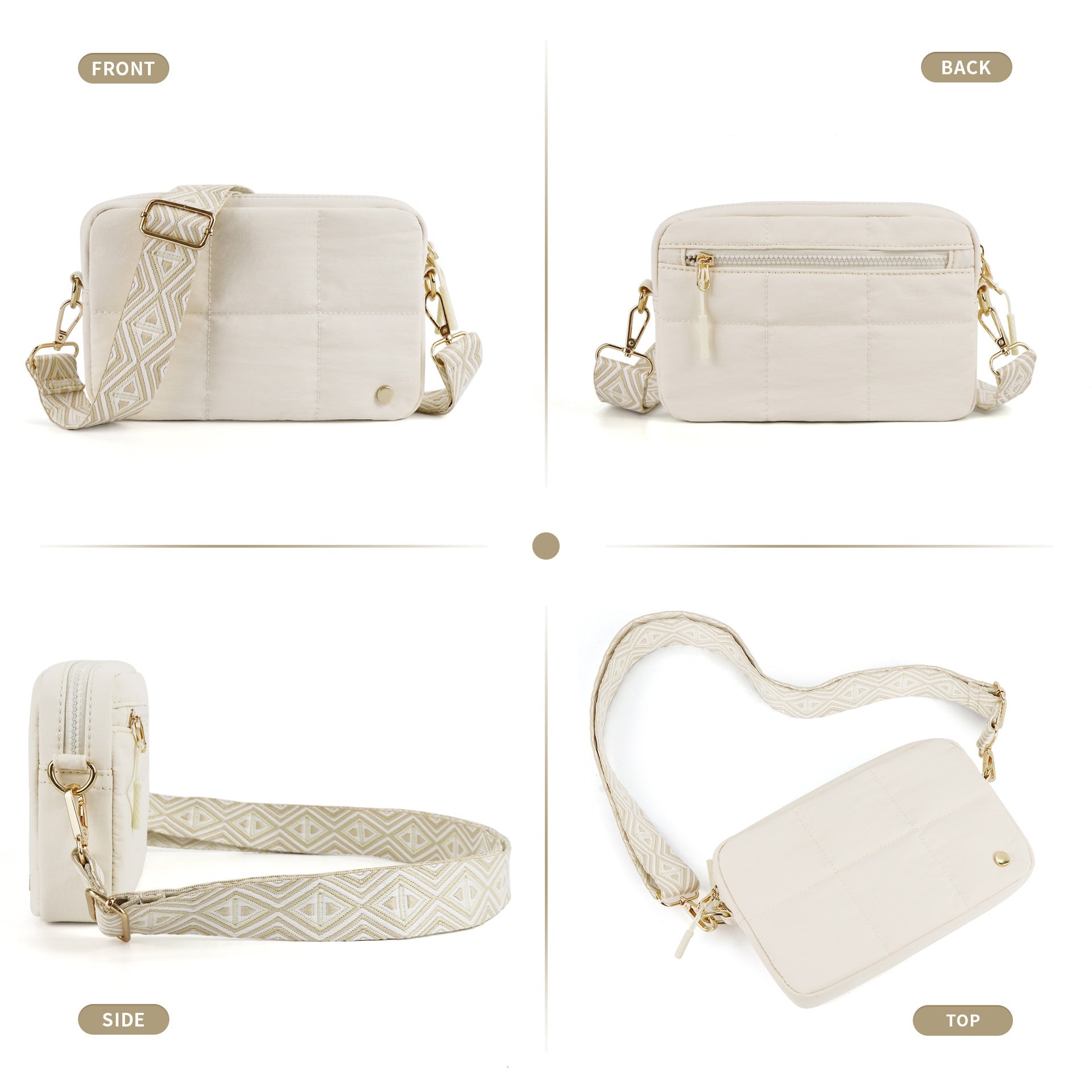 ÁLLÍTHATÓ SZÍJ ERŐS FÉM HORGOKKAL: Az állítható pánt kényelmes illeszkedést biztosít, míg a masszív fém kampók növelik a tartósságot. Viselje keresztben vagy vállon át a kéz nélküli kényelem érdekében.